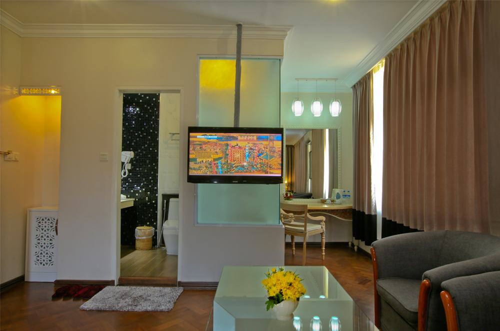 Enjoy a functionally arranged living space complete with a writing desk, parlor-style chairs, and a spacious bathroom. As a special touch, booking a Deluxe room grants you exclusive access to our oasis-like swimming pool.
